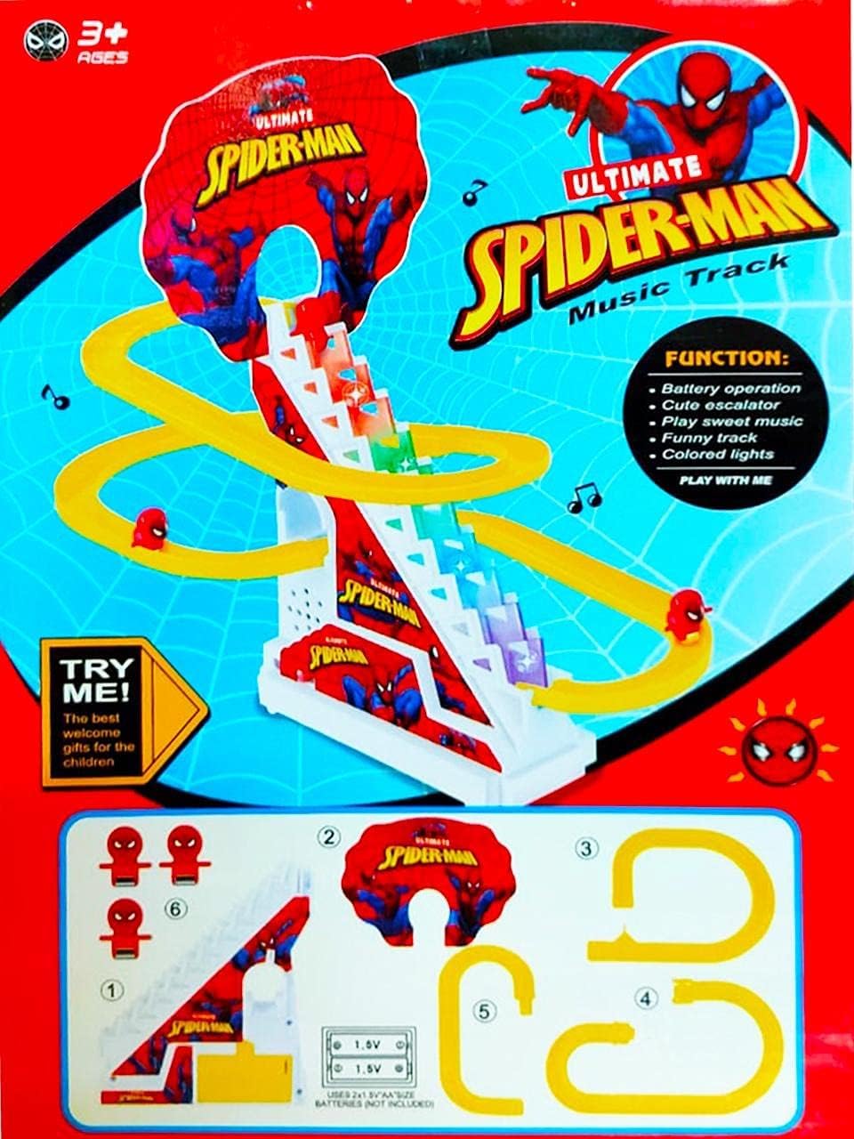 - Automatic Stair-Climbing Action: Watch as the included Spider-Man figures automatically ascend the escalator-like stairs and then slide down the track.