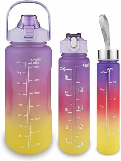 Set of Three: Includes three motivational water bottles of varying capacities to support consistent hydration throughout the day.